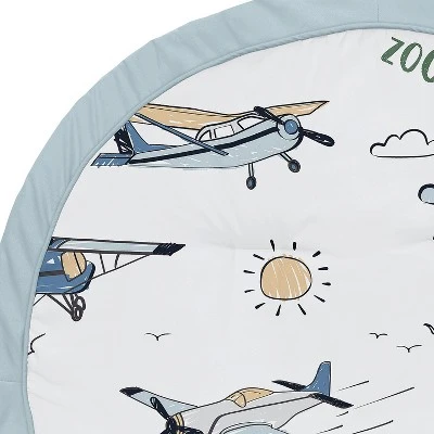 Airplane Green and Blue Collection Play Mats by Sweet Jojo Designs make tummy time and child development stylish and fun. Made with soft fabrics and fluffy fill, this multi-functional mat is small enough to take on the go. These adorable playmats will transform any room into the perfect play space. Great for vacations, playdates, beach outings, and everyday use at home. Always be aware of baby’s surroundings and keep an eye on baby while in use. Not intended for sleep. Sweet Jojo Designs creates various coordinating room accessories and decor for all of their children’s bedding and nursery bedding set collections (These items not included). Playmat is designed using a grey, yellow, green, gray, white and blue vintage airplanes transportation air plane clouds sun sky aviator aviation airplane print and finished with slate blue piping and border – Brushed Microfiber