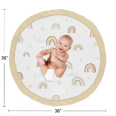 Neutral Boho Rainbow Collection Play Mats by Sweet Jojo Designs make tummy time and child development stylish and fun. Made with soft fabrics and fluffy fill, this multi-functional mat is small enough to take on the go. These adorable playmats will transform any room into the perfect play space. Great for vacations, playdates, beach outings, and everyday use at home. Always be aware of baby’s surroundings and keep an eye on baby while in use. Not intended for sleep. Sweet Jojo Designs creates various coordinating room accessories and decor for all of their children’s bedding and nursery bedding set collections (These items not included). Playmat is designed using a multicolor boho rainbow print and finished with mustard yellow piping and border – Brushed Microfiber