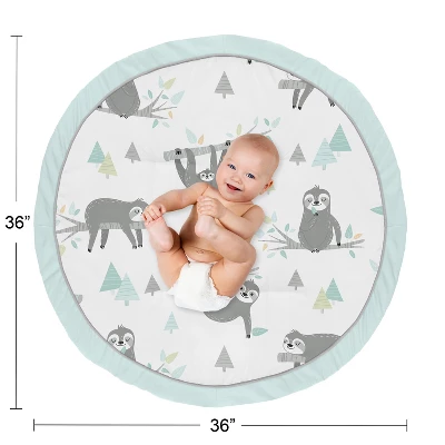 Sloth Aqua and Grey Collection Play Mats by Sweet Jojo Designs make tummy time and child development stylish and fun. Made with soft fabrics and fluffy fill, this multi-functional mat is small enough to take on the go. These adorable playmats will transform any room into the perfect play space. Great for vacations, playdates, beach outings, and everyday use at home. Always be aware of baby’s surroundings and keep an eye on baby while in use. Not intended for sleep. Sweet Jojo Designs creates various coordinating room accessories and decor for all of their children’s bedding and nursery bedding set collections (These items not included). 1 Playmat