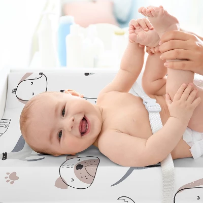 Cartoon Puppy Collection Sweet Jojo Designs baby changing pad sheet covers is the perfect nursery essential. Use a changing mat cover sheet for extra protection and comfort for newborns and toddlers during outfit changes or changing diapers. And it’s always a good idea to buy extras so you can easily change it out when it’s time to wash. Sweet Jojo Designs offers coordinating crib bedding sets, receiving security blankets, nursing pillow covers and other baby room decor accessories (These items not included). This brushed microfiber diaper pad cover sheet features an exclusive design of a grey taupe blue modern watercolor puppy bulldog wiener doggy pet puppies dog and paw prints.