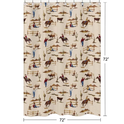 Wild West Cowboy Collection Create an easy bathroom makeover with this Sweet Jojo Designs shower curtain. Add a touch of style and a splash of color to your bathroom to complete the look of your dream decorative theme. Sweet Jojo Designs creates various coordinating room accessories and decor for all of their children’s bedding and nursery bedding set collections (These items not included). Made with 12 reinforced button holes to prevent tearing. Brushed Microfiber – Tan, Red White and Blue Southern Country Western Animal Wild West Cowboys and Horses Print