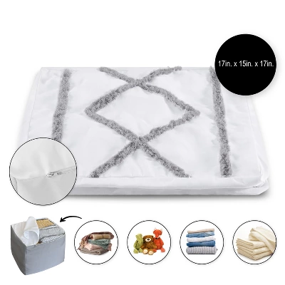 Boho Fringe White and Grey Ottoman Pouf Cover by Sweet Jojo Designs can be used to store all your newborn essentials. Our versatile unstuffed poof cover can be used in any room in the home to store all your extra supplies or linens. Place all unwanted clutter into the decorative pouf and turn it into a comfortable foot stool or chair. Using our exclusive durable canvas fabric, your stuffable pouf will coordinate with our crib bedding sets, storage bins and room decor accessories to give you a complete look for your room. When not in use, this space saving, kid friendly, multifunctional extra seating option can be unstuffed and folded to be put away. They also make the perfect gender reveal or baby shower gift for parents welcoming a new addition to their family. Sweet Jojo Designs creates various coordinating room accessories and decor for all of their children’s bedding and nursery bedding set collections (These items not included). Design: Bohemian bright white canvas fabric with grey boho chic minimalist tufted geometric fringe accents. These poufs are the perfect way to bring a little bit of minimalistic charm to your home