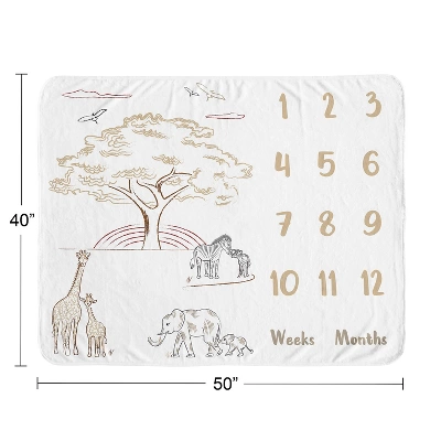 Serengeti Animals Collection Sweet Jojo Designs 3 Piece Milestone Baby Blankets offer the perfect prop to help you capture monthly growth achievements. Each blanket features the numbers 1-12 and two soft frames that you can easily place over the numbers to correspond with your little one’s age in months and weeks. They make an adorable backdrop for all your baby’s photos as you celebrate each month of their first year or use as a security blanket, nursery receiving swaddle, tummy time floor playmat, or even a stroller or car seat cover. Add these lightweight blankets to any new parent list or give as the best keepsake baby shower gift. Snapshots taken with this soft infancy chart tracker will help you make the most precious social media posts to share on your wall or feed for friends, family, and followers to enjoy. No filter needed! Pair your blanket with your favorite Sweet Jojo Designs crib bedding sets, receiving security blankets, changing pad covers, crib sheets and other baby room decor accessories (These items not included). 100% plush minky fleece featuring multicolor jungle safari animals print