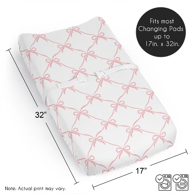 Ballerina and Ballet Bows Collection Sweet Jojo Designs baby changing pad sheet covers is the perfect nursery essential. Use a changing mat cover sheet for extra protection and comfort for newborns and toddlers during outfit changes or changing diapers. And it’s always a good idea to buy extras so you can easily change it out when it’s time to wash. Sweet Jojo Designs offers coordinating crib bedding sets, receiving security blankets, nursing pillow covers and other baby room decor accessories (These items not included). This brushed microfiber diaper pad cover sheet features an exclusive design of a blush and white shabby chic dancer princess bows print.