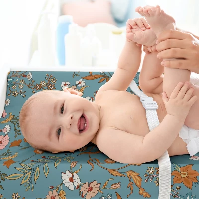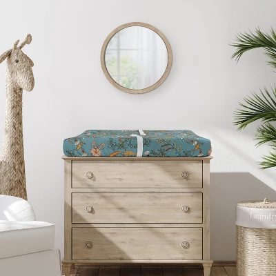 Boho Floral Wildflower Blue and Orange Collection Sweet Jojo Designs baby changing pad sheet covers is the perfect nursery essential. Use a changing mat cover sheet for extra protection and comfort for newborns and toddlers during outfit changes or changing diapers. And it’s always a good idea to buy extras so you can easily change it out when it’s time to wash. Sweet Jojo Designs offers coordinating crib bedding sets, receiving security blankets, nursing pillow covers and other baby room decor accessories (These items not included). This brushed microfiber diaper pad cover sheet features an exclusive design of a turquoise blue, rust orange, teal, green, pink and yellow boho wildflower vintage botanical garden daisy paisley leaf leaves bohemian flower farmhouse cottagecore indie rustic floral print.