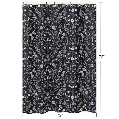 Boho Floral Wildflower Black and Purple Collection Sweet Jojo Designs elevates any bath room with a fabric shower curtain. Add a bath shower curtain for a stylish decorative upgrade for any washroom with this single-line curtain. This shower curtain for bathroom features exclusive patterns and prints and is designed with 12 sewn and reinforced ring holes along the top for easy installation to any standard shower curtain rod (shower hook rings and liner not included). Create a unique and decorative look to be displayed in any restroom to provide the perfect complete and relaxing ambiance feel during bathing time. Pair your bathroom shower curtain with your favorite Sweet Jojo Designs collections and coordinate with your crib bedding sets, twin or queen bed sets, window valances, and room decor accessories to give you a complete look for any room you are wishing to transform! Guest bathrooms can become a welcoming oasis for visitors with the right shower curtain and bathroom decor. Pair one of our vibrant prints with solid color towels to add a calming balance in small spaces. Or choose a minimalistic option and coordinate with a fun design for your washcloths. Whatever interior design choice you go with, a wash room shower curtain is a quick and easy way to do a bathroom makeover. A modern bathtub curtain is the perfect finishing touch to any kids bathroom to complete the decorative theme you envisioned for your space, making this your new must have wash room decor essential! Have your little one look up at their favorite patterns and designs, making bathtime enjoyable for you and your child. Makes the perfect gift to coordinate with Sweet Jojo Designs kids bedding, blankets, duvets, wall decor, window valances and curtains. Include a few coordinating items in your house warming gift basket to friends moving into a new apartment or in your college dorm moving essentials for your teen for a thoughtful and functional present to celebrate big changes in loved ones lives. This brushed microfiber bath shower curtain features an exclusive design of black, lavender purple, periwinkle, teal, turquoise blue and ivory vintage floral daisy leaves botanical paisley leaf garden indie rustic flower farmhouse boho cottagecore bohemian wildflower print